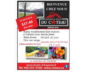 La saison des sucres battra son plein dès le 28 février 2026 jusqu’au 19 avril 2026 à la Cabane à sucre du Coteau